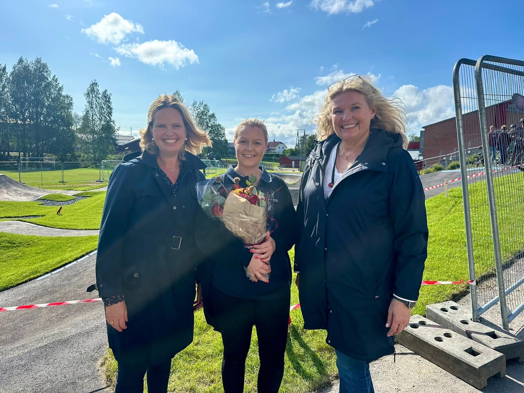 Kristine Thingelstad Ramsland fra Haugsbygd IF, Linda Nordgård fra Sparebank 1-stiftelsen Ringerike og Randi Broberg, rektor ved Vang skole.
